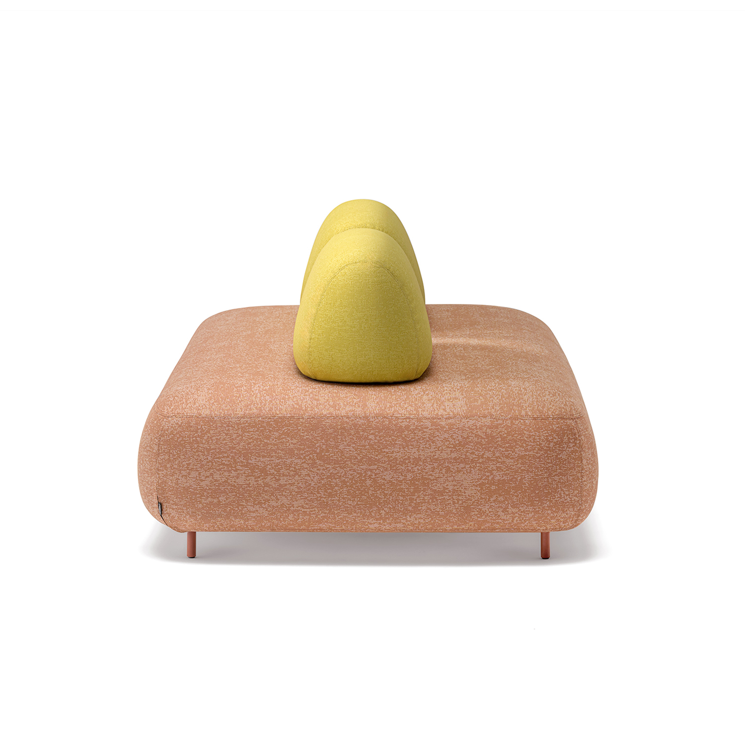 Molded foam modular collection with frame in powder coated finish with waterproof graded-in D fabric. Backrest cushion is available in waterproof Grade D fabric with surcharge. Also available in height 17.70".