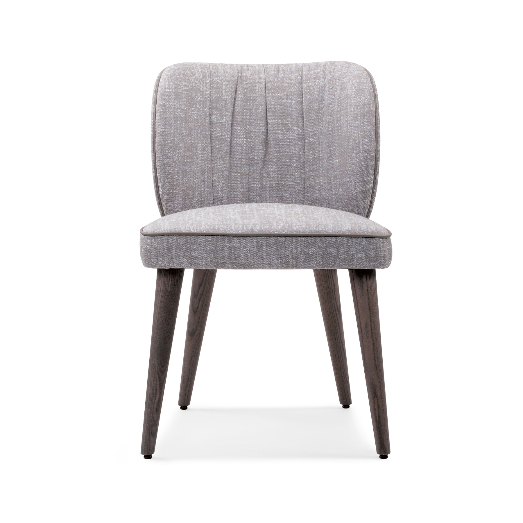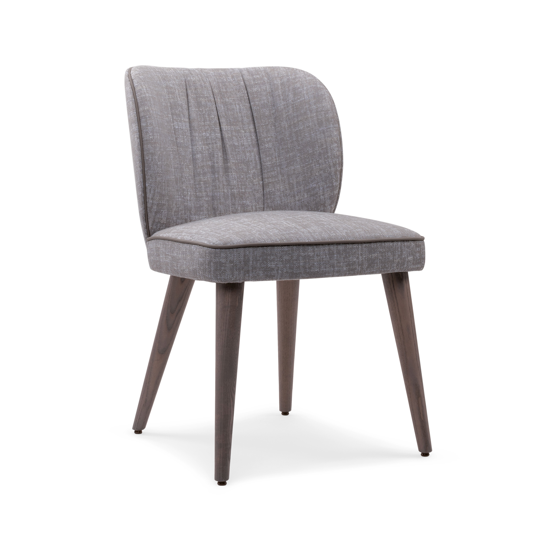 - PRODUCT DETAILS: Fully upholstered shell with solid ash wood legs. Ferrules in brass or aluminium finish are included are available with surcharge.