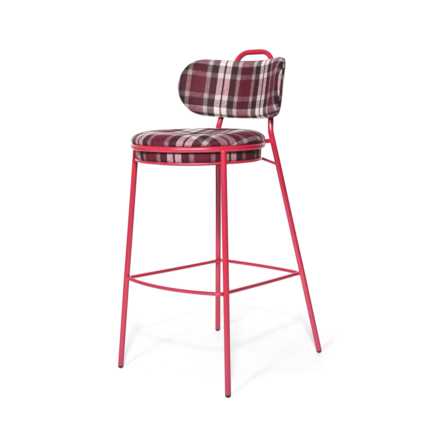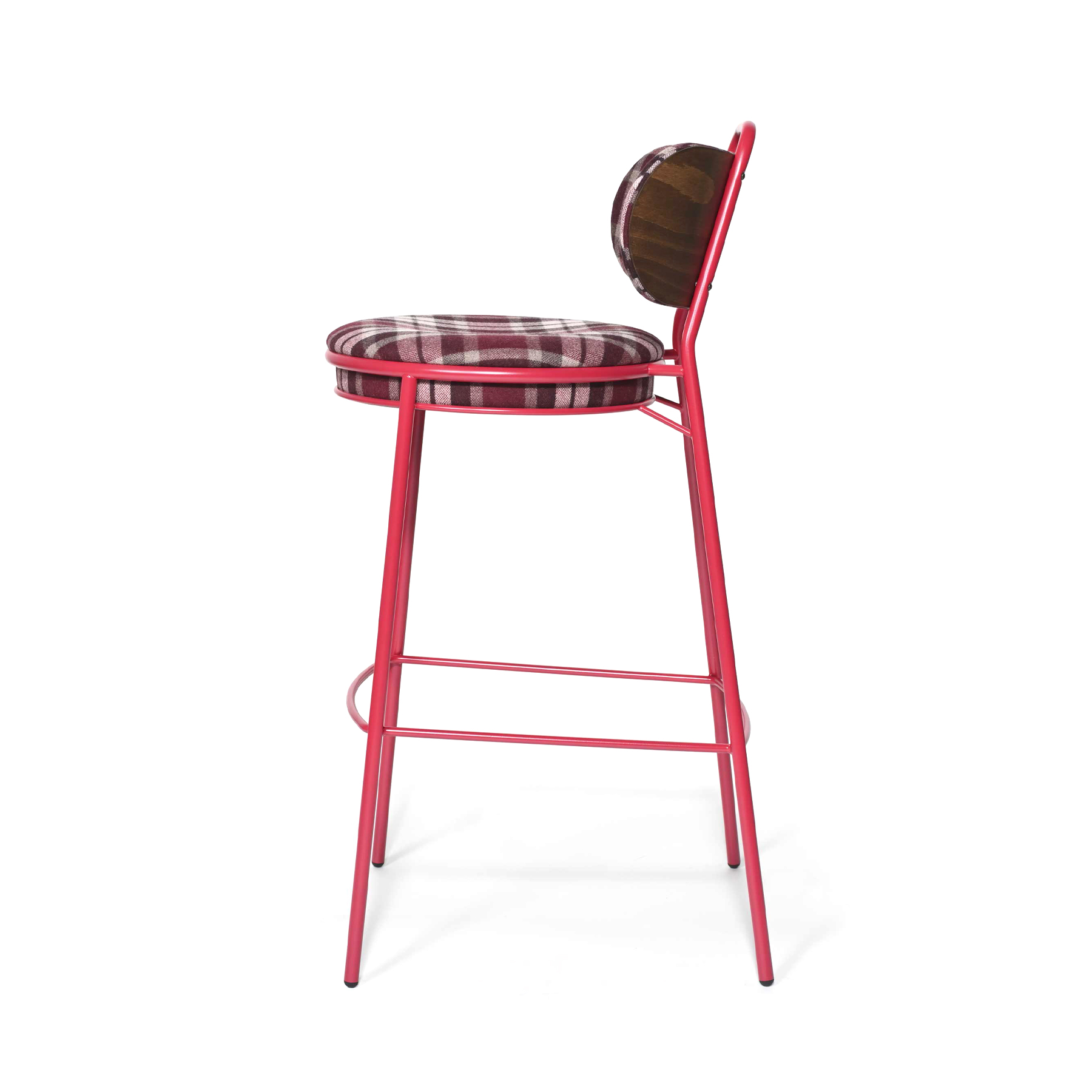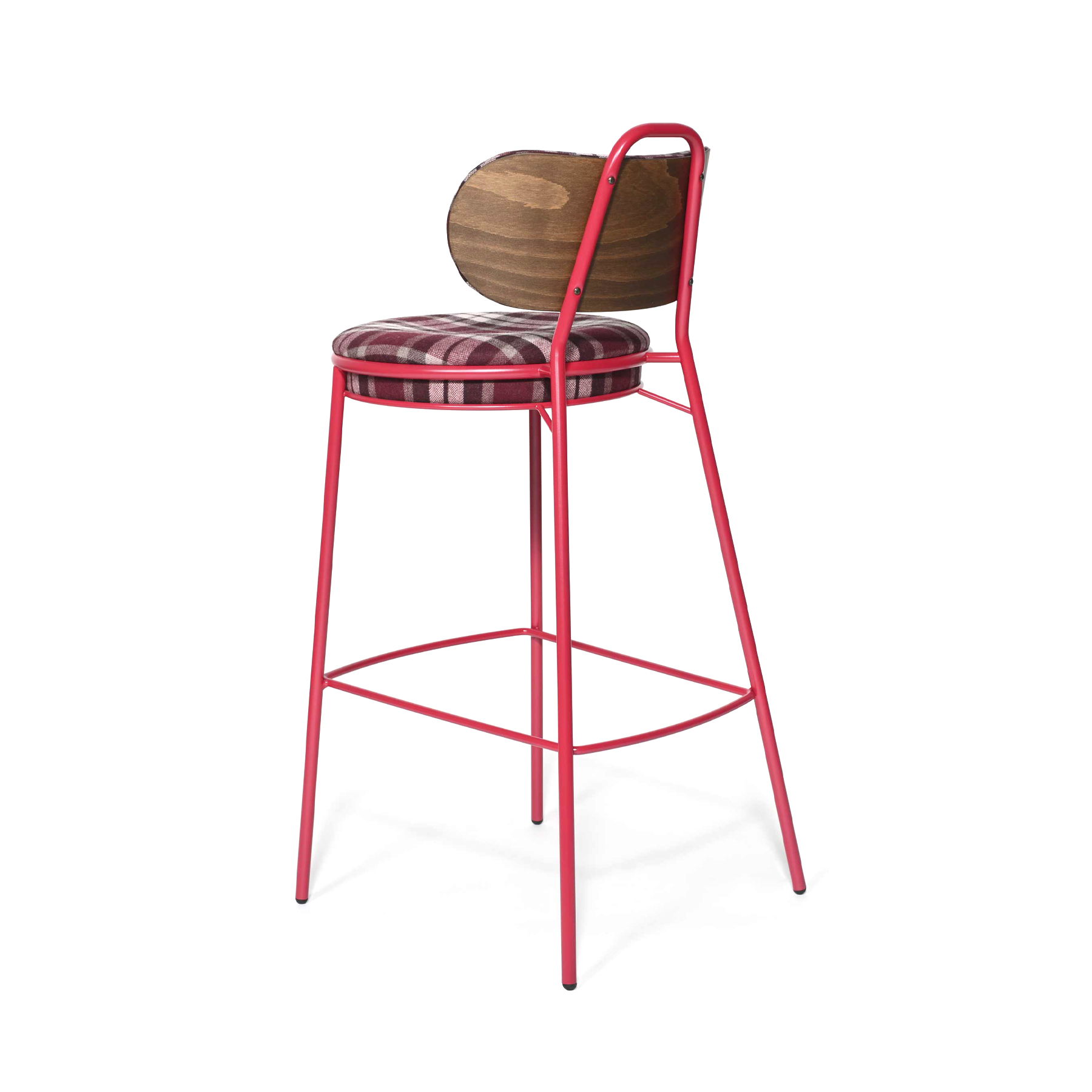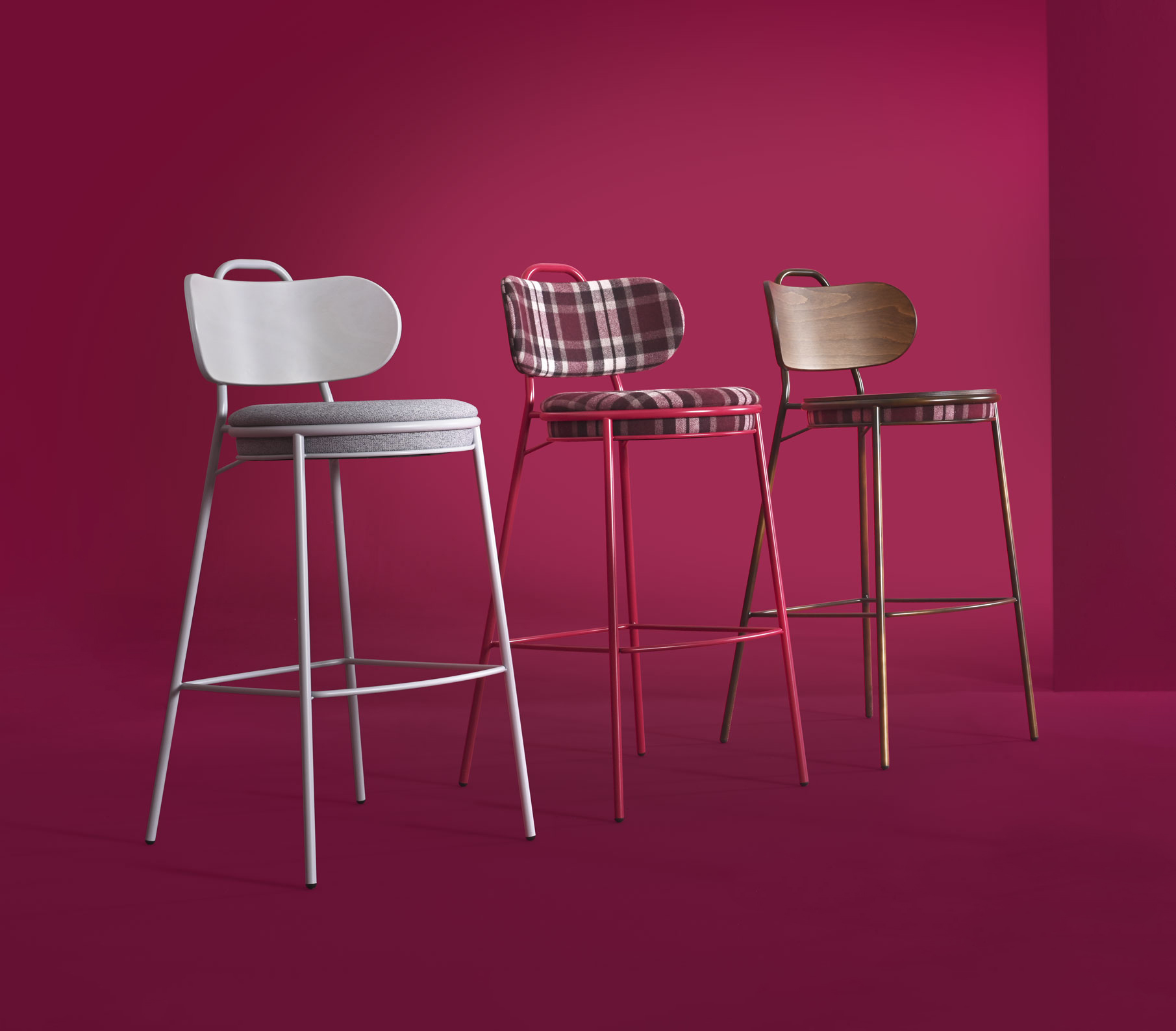 - PRODUCT DETAILS: Metal frame with upholstered seat and inside back with beech wood stained back outside. Available in counter seat height up to 24”.