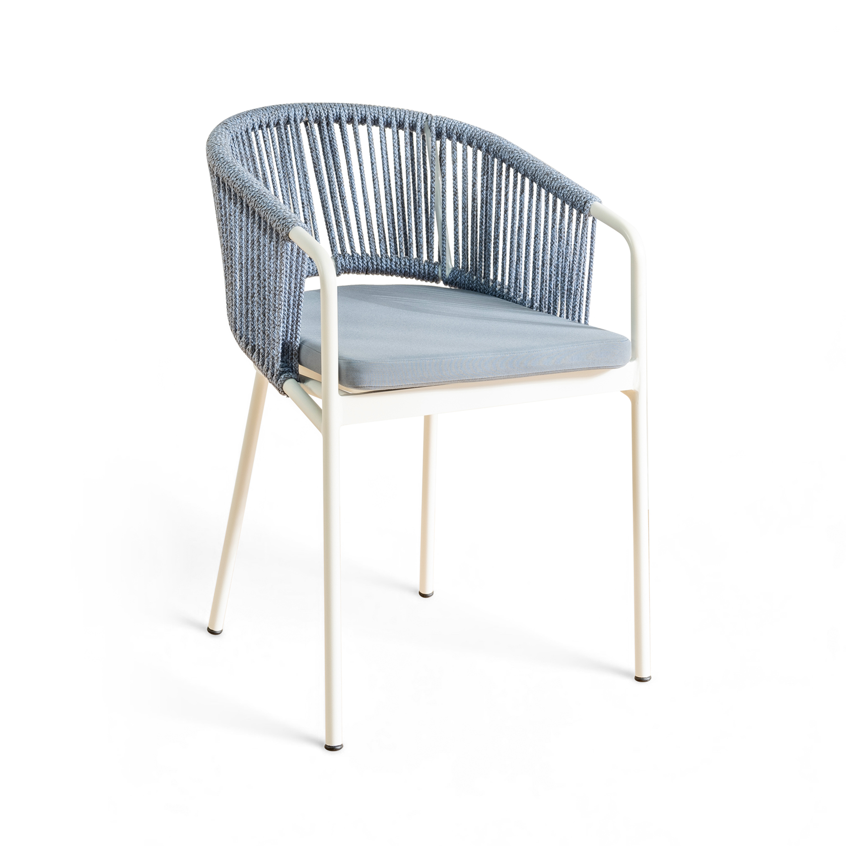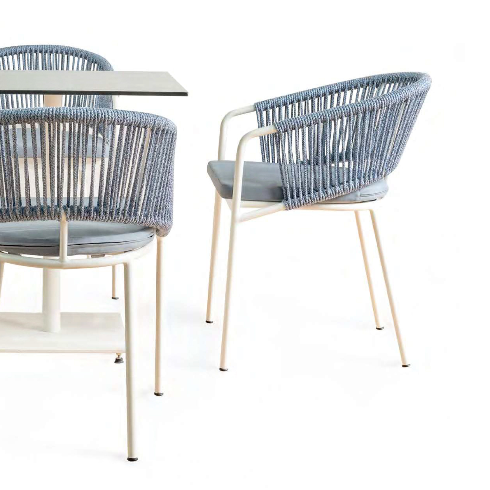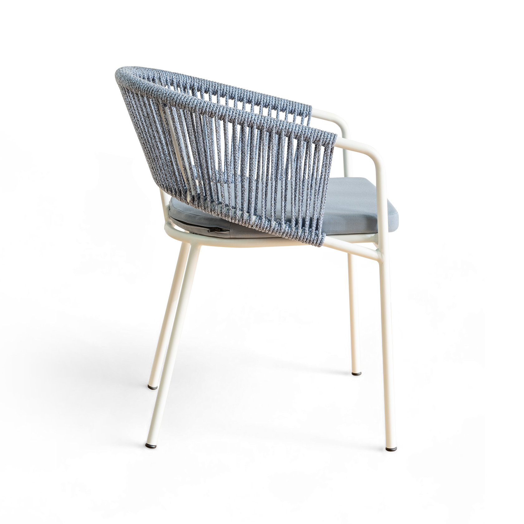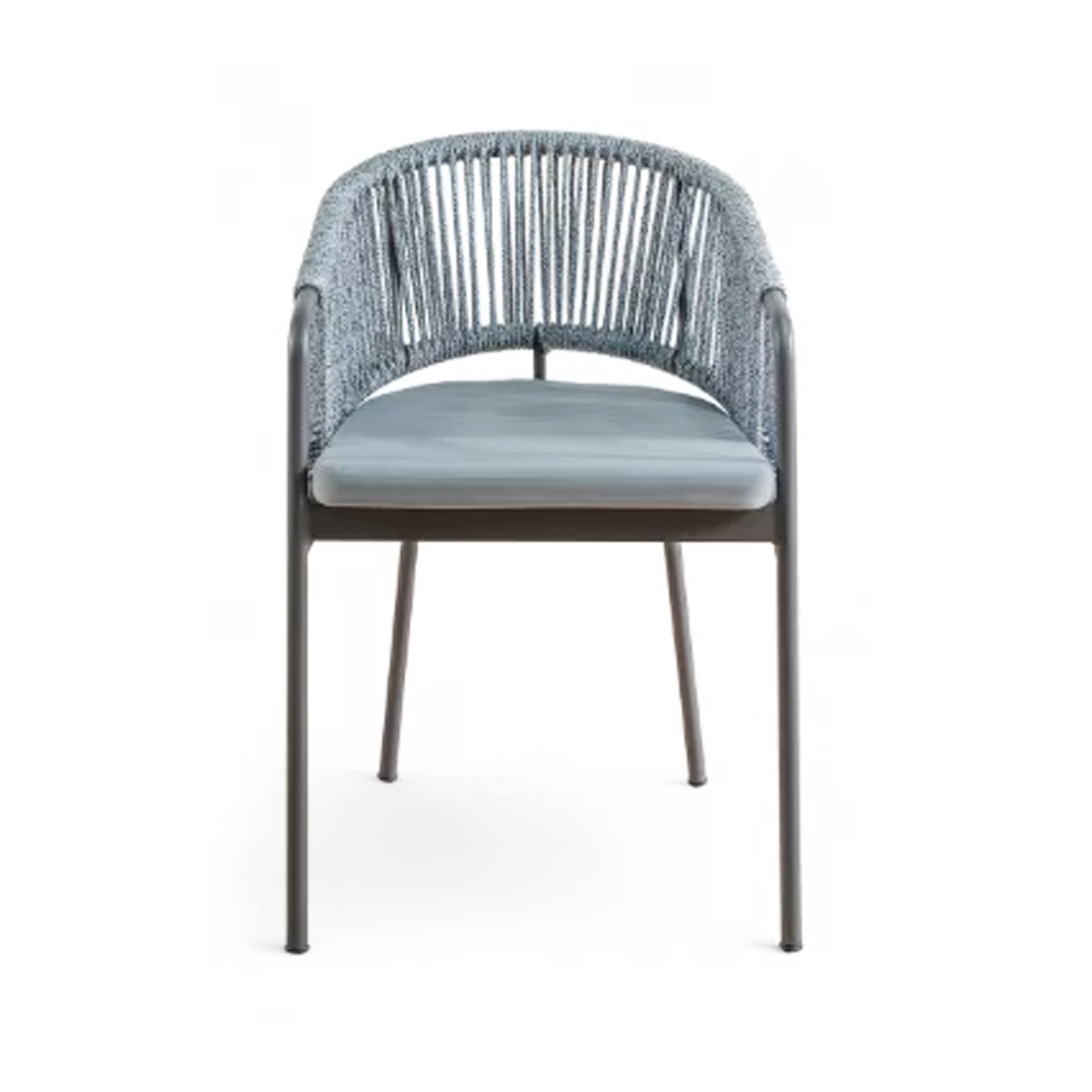 - PRODUCT DETAILS: Aluminum frame and hand-woven rope, with upholstered seat and back cushion.