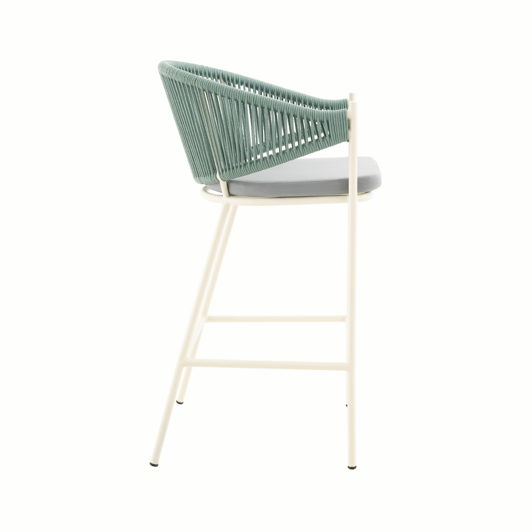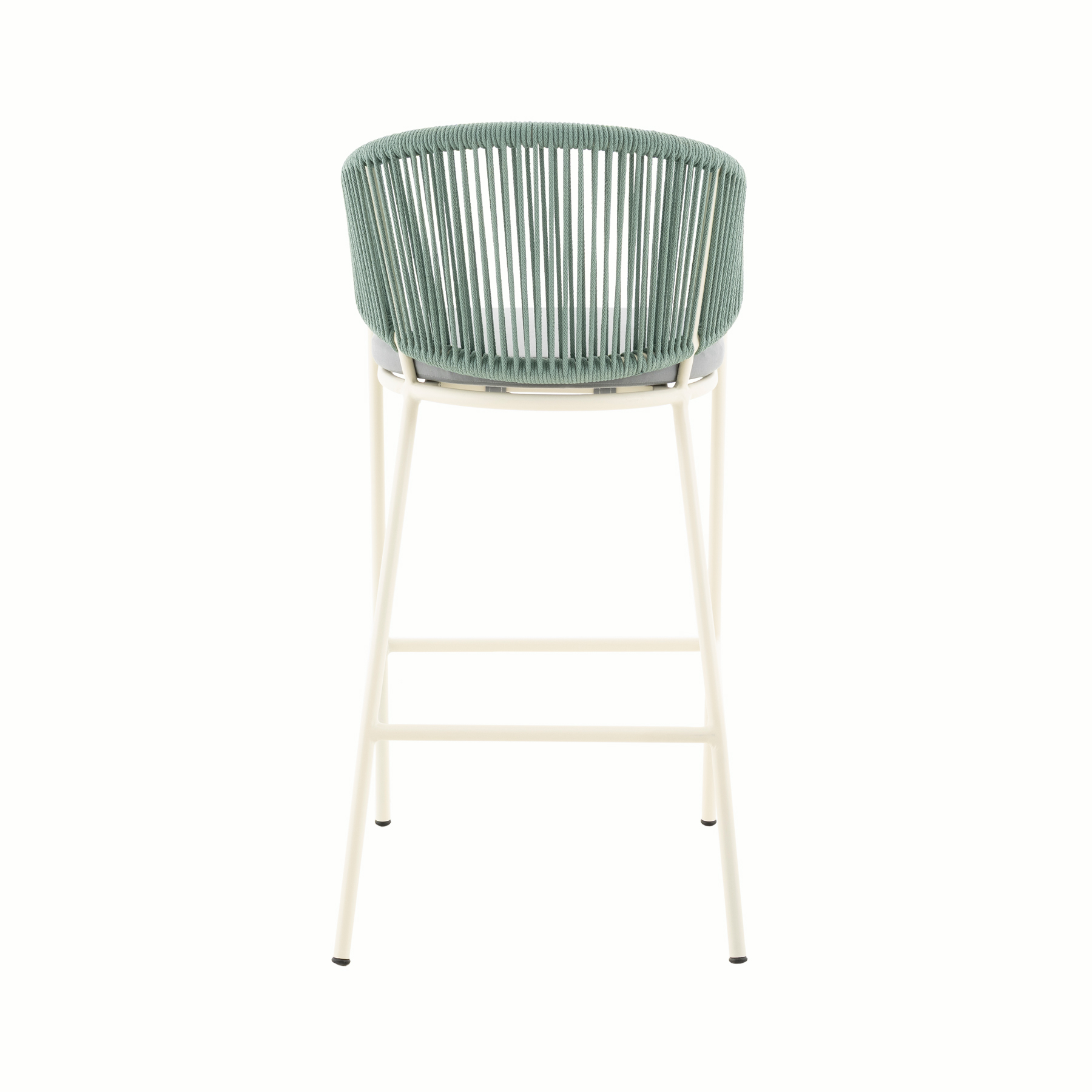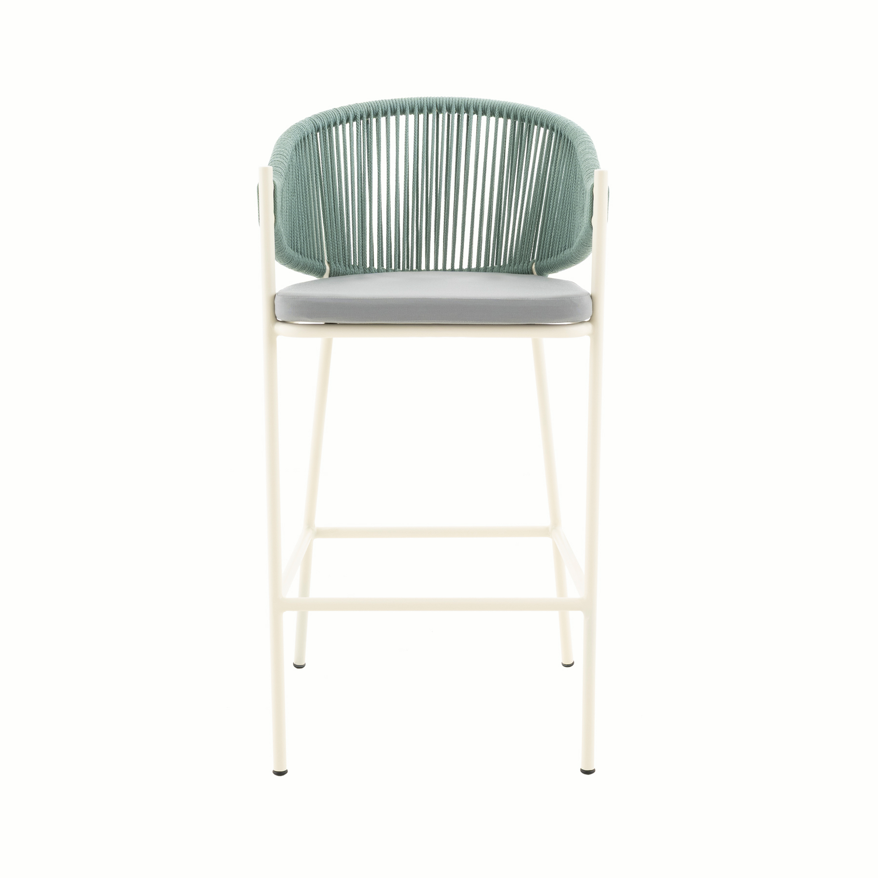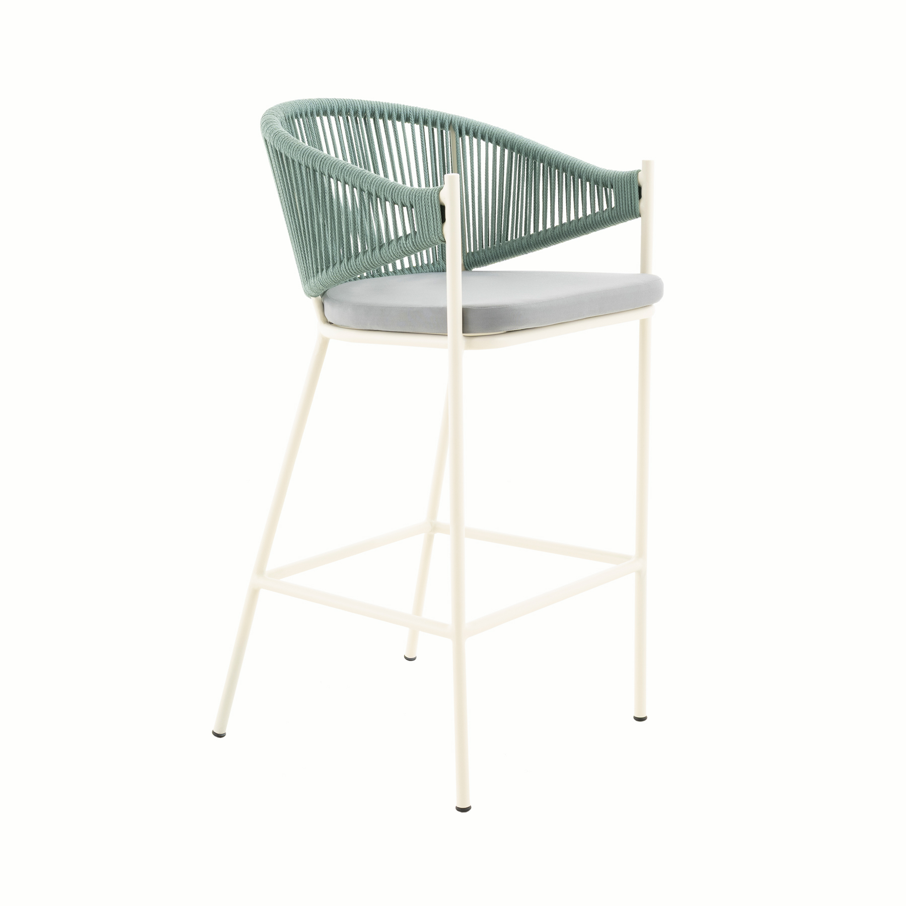 - PRODUCT DETAILS: Aluminum frame and hand-woven rope, with upholstered seat and back ushion. Available in counter height with seat height up to 26”.