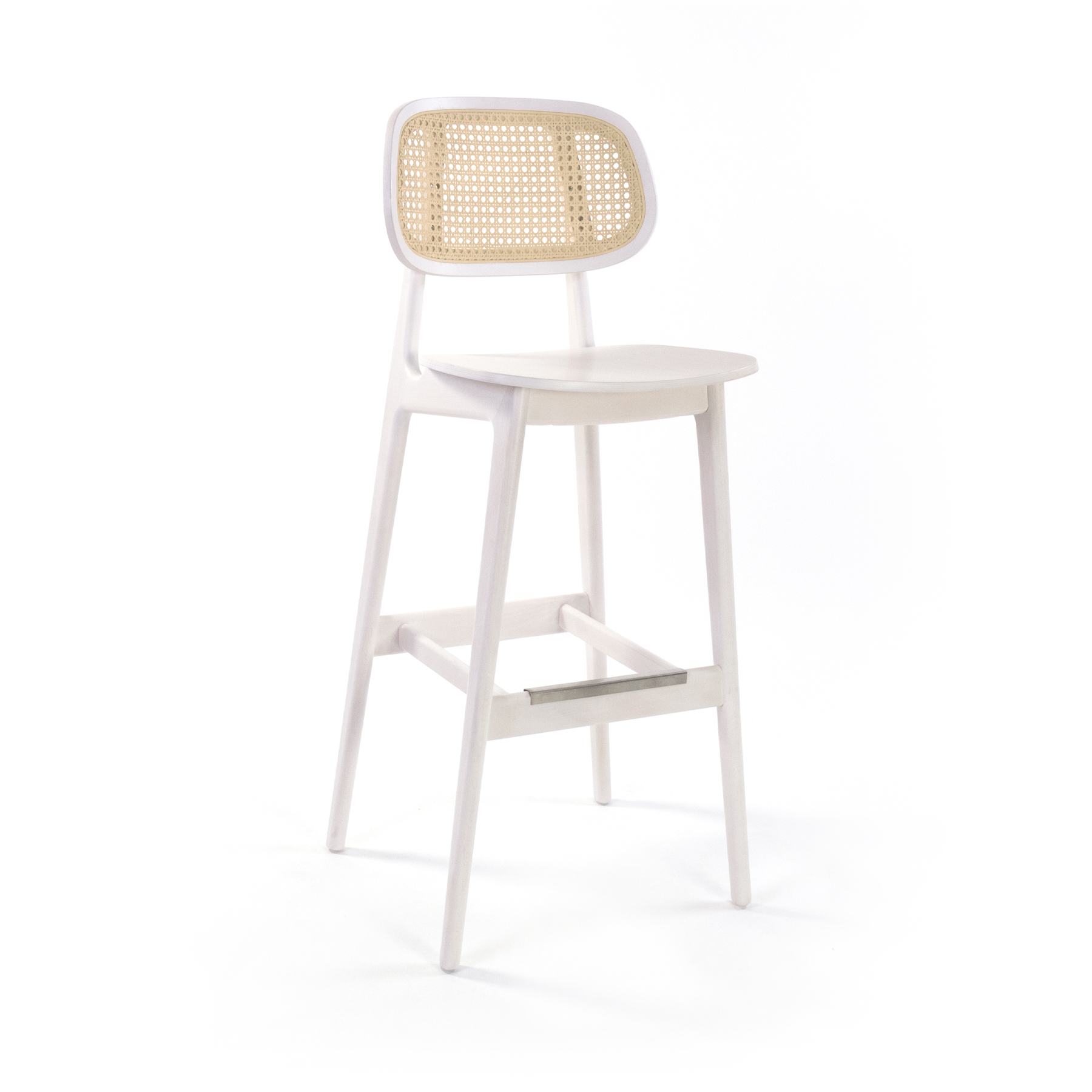 - PRODUCT DETAILS: Beech wood frame with solid seat and cane back in natural finish. Available in counter height with 24" seat height.