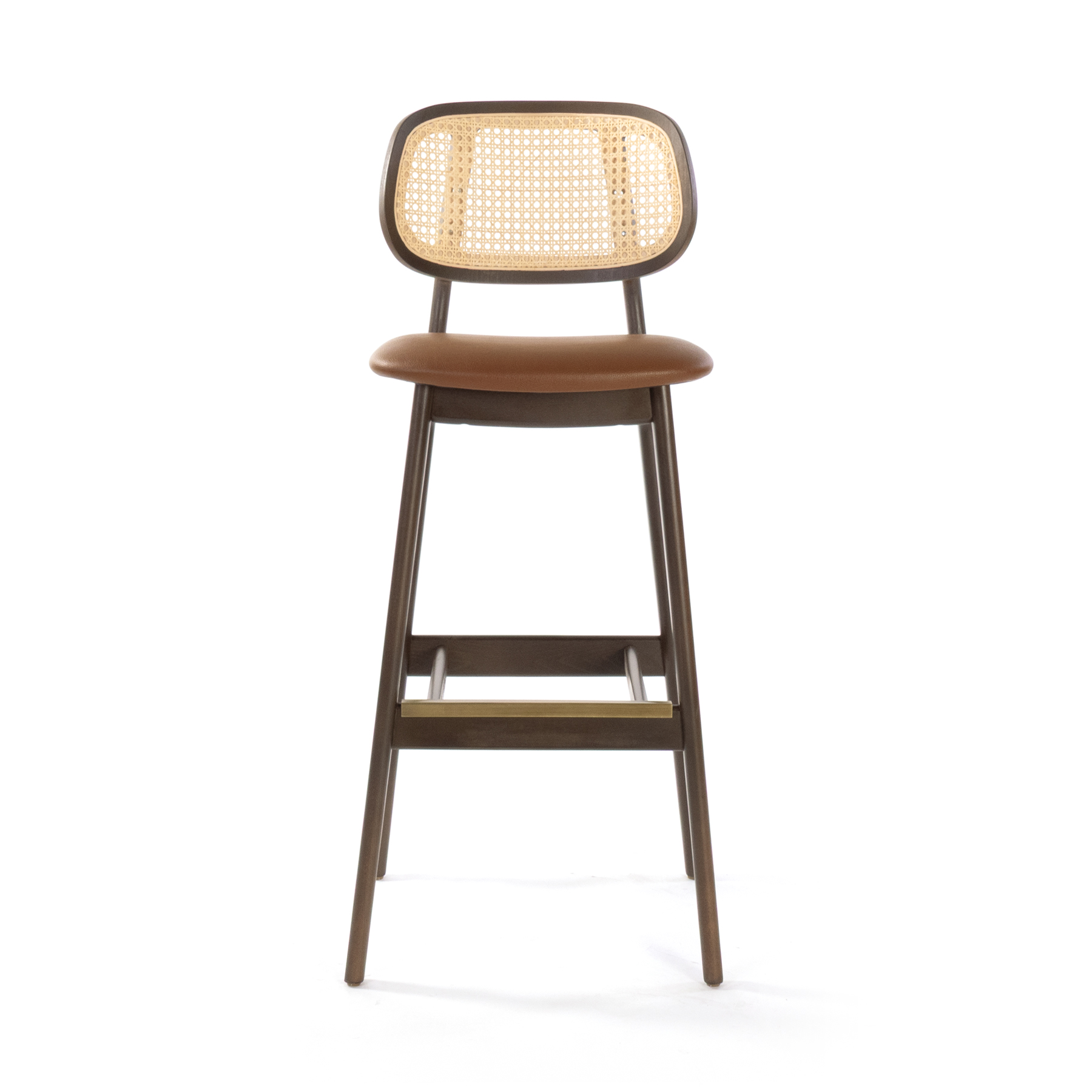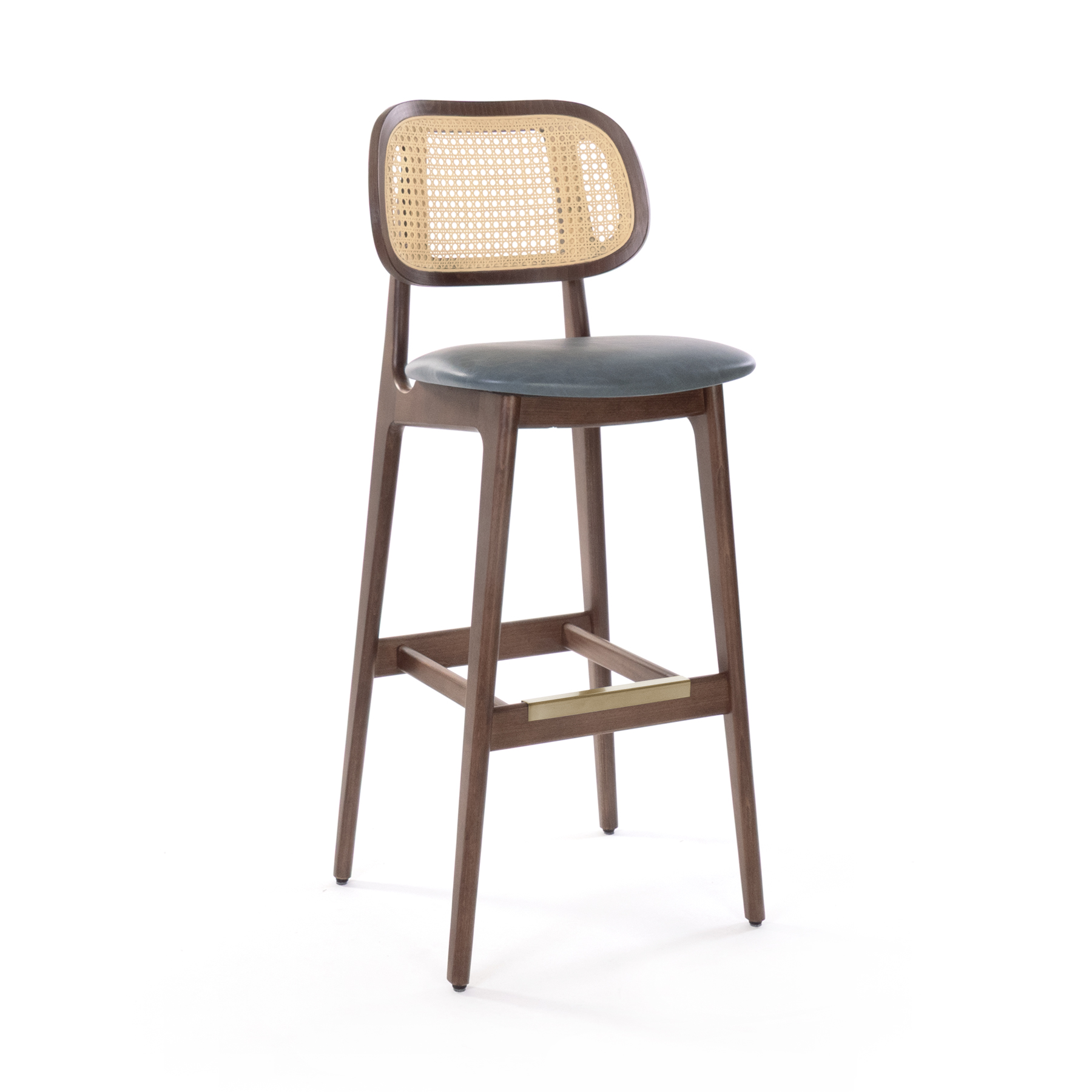 - PRODUCT DETAILS: Solid beech wood frame with upholstered seat and cane back. Available in counter height with 24” seat height.