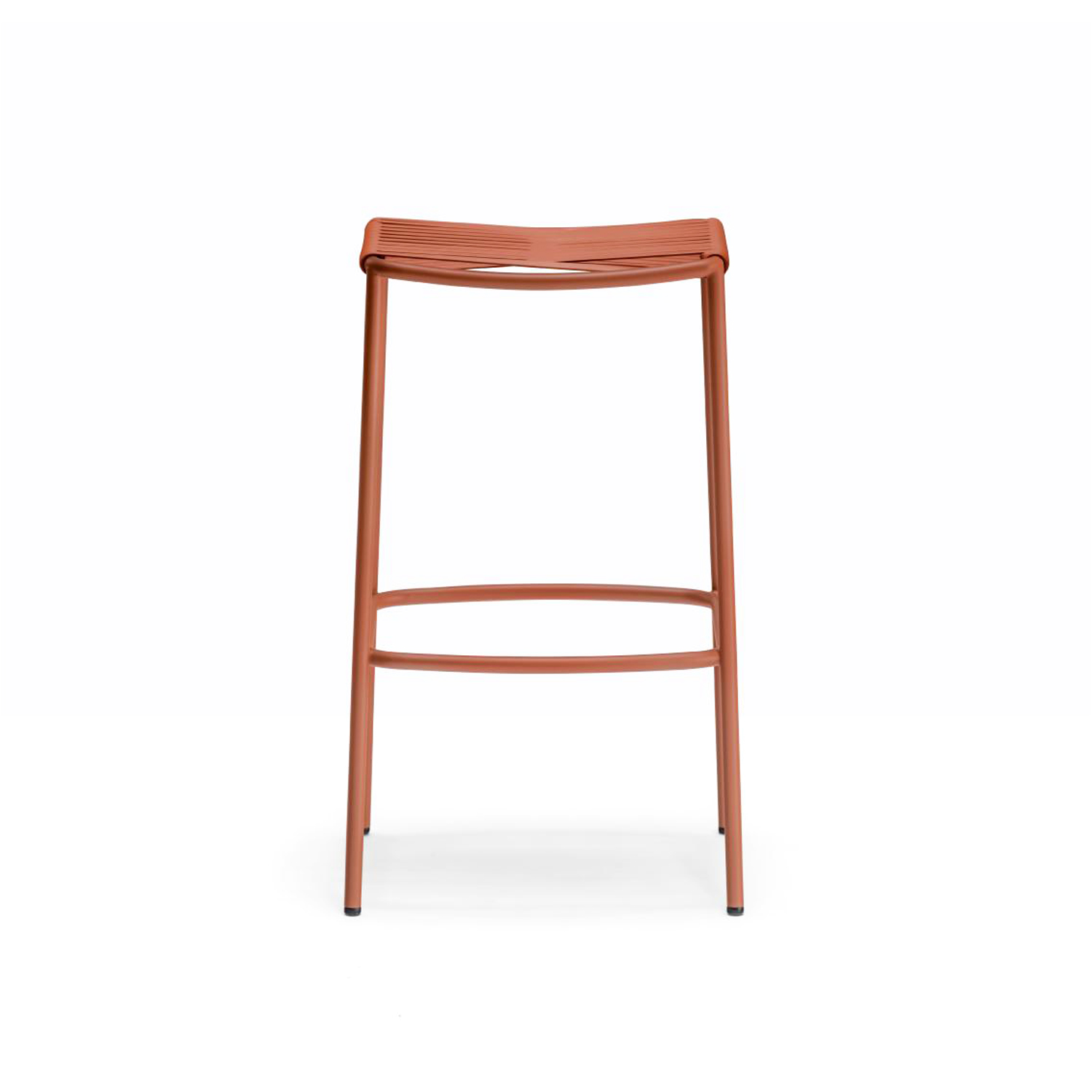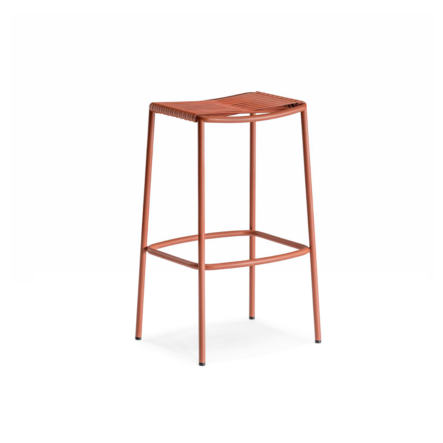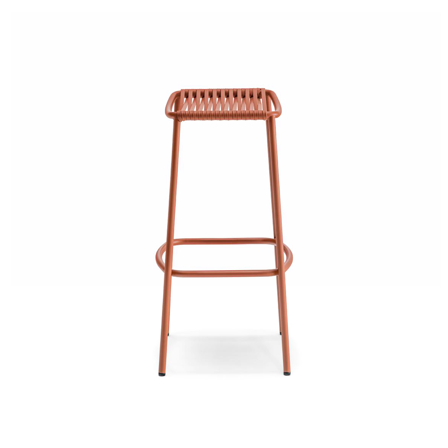 Metal frame with steel tube 20mm for outdoor in powder coated finish and PVC hand woven seat with colour matching the frame. Stackable 2 pcs.