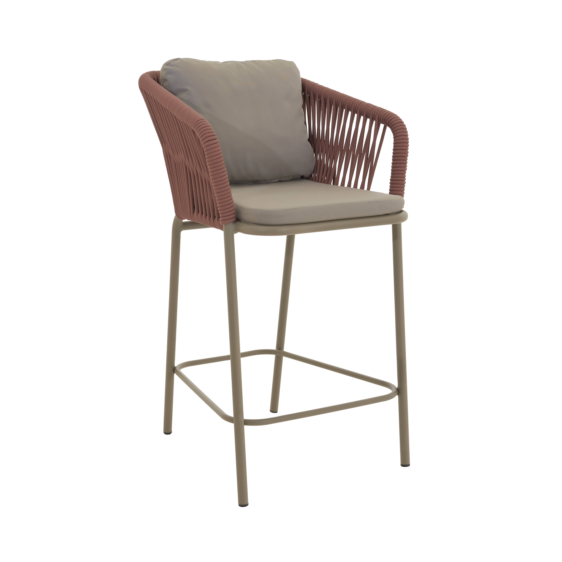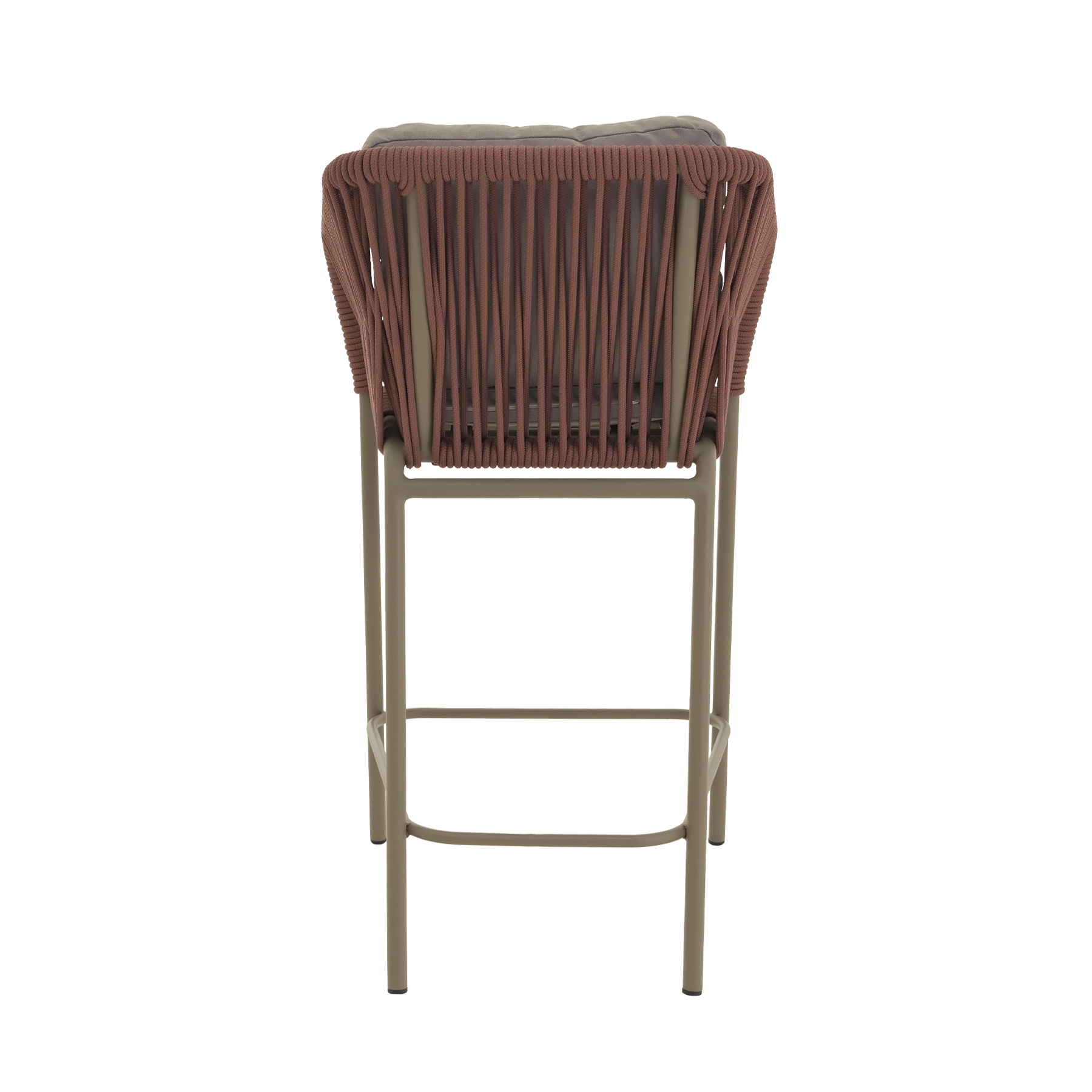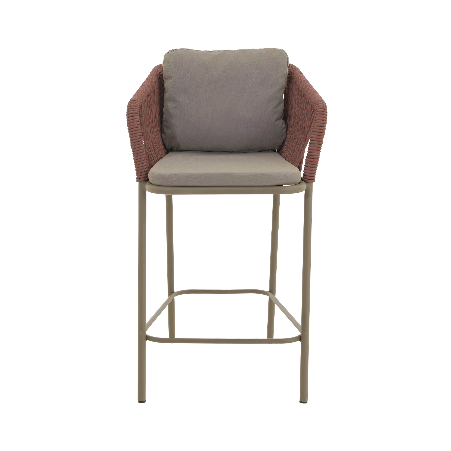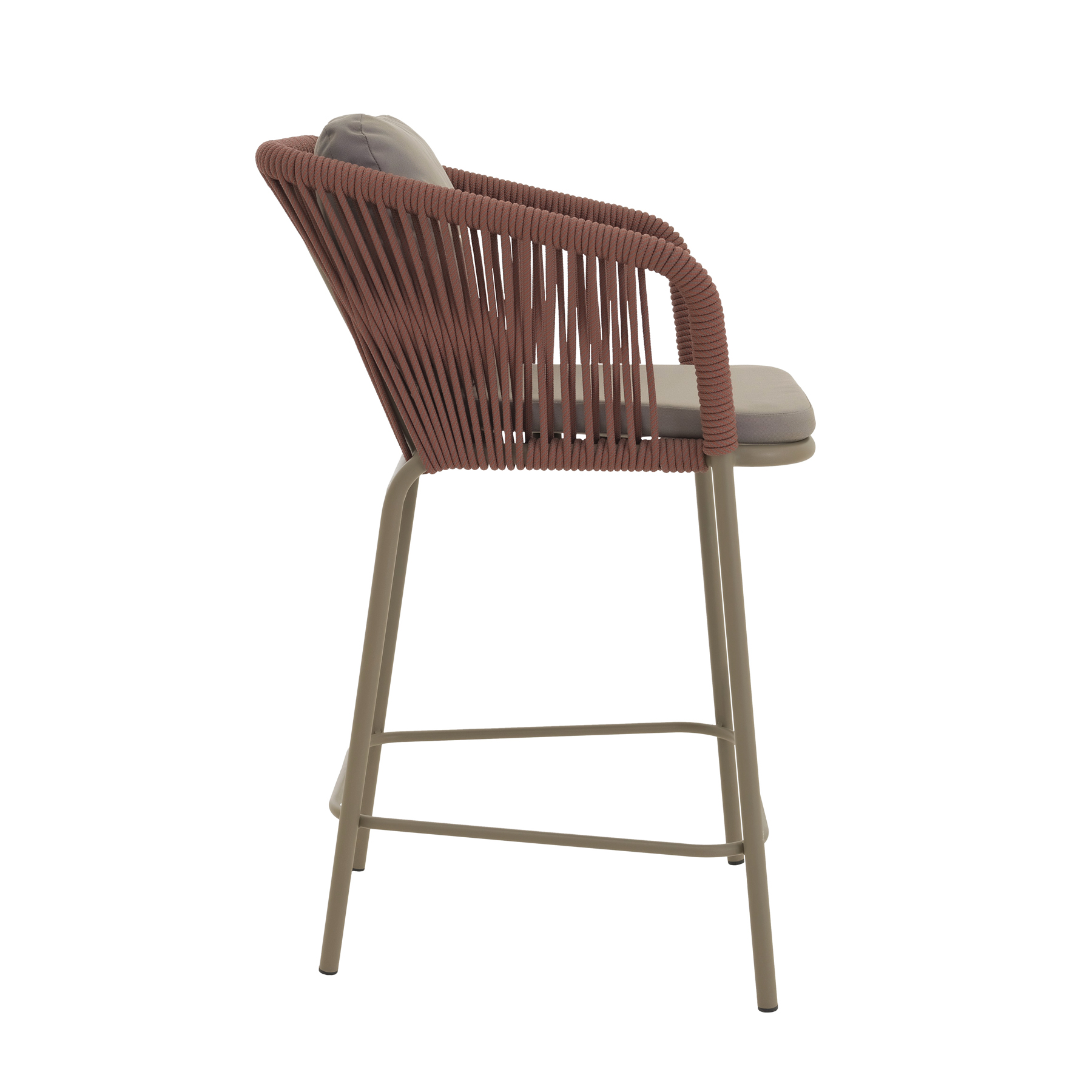 - PRODUCT DETAILS: Aluminum frame and hand-woven rope, with upholstered seat and back cushion. Available in counter height with seat height up to 24”.