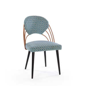 Beech wood frame with metal accent details on the back and upholstered seat and back. Available in counter height with seat height up to 24”.