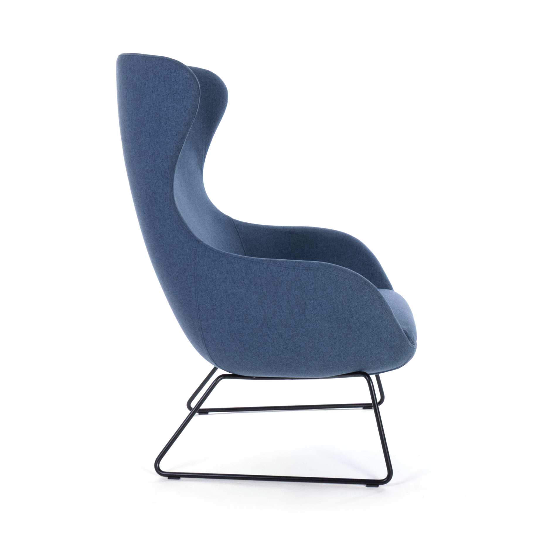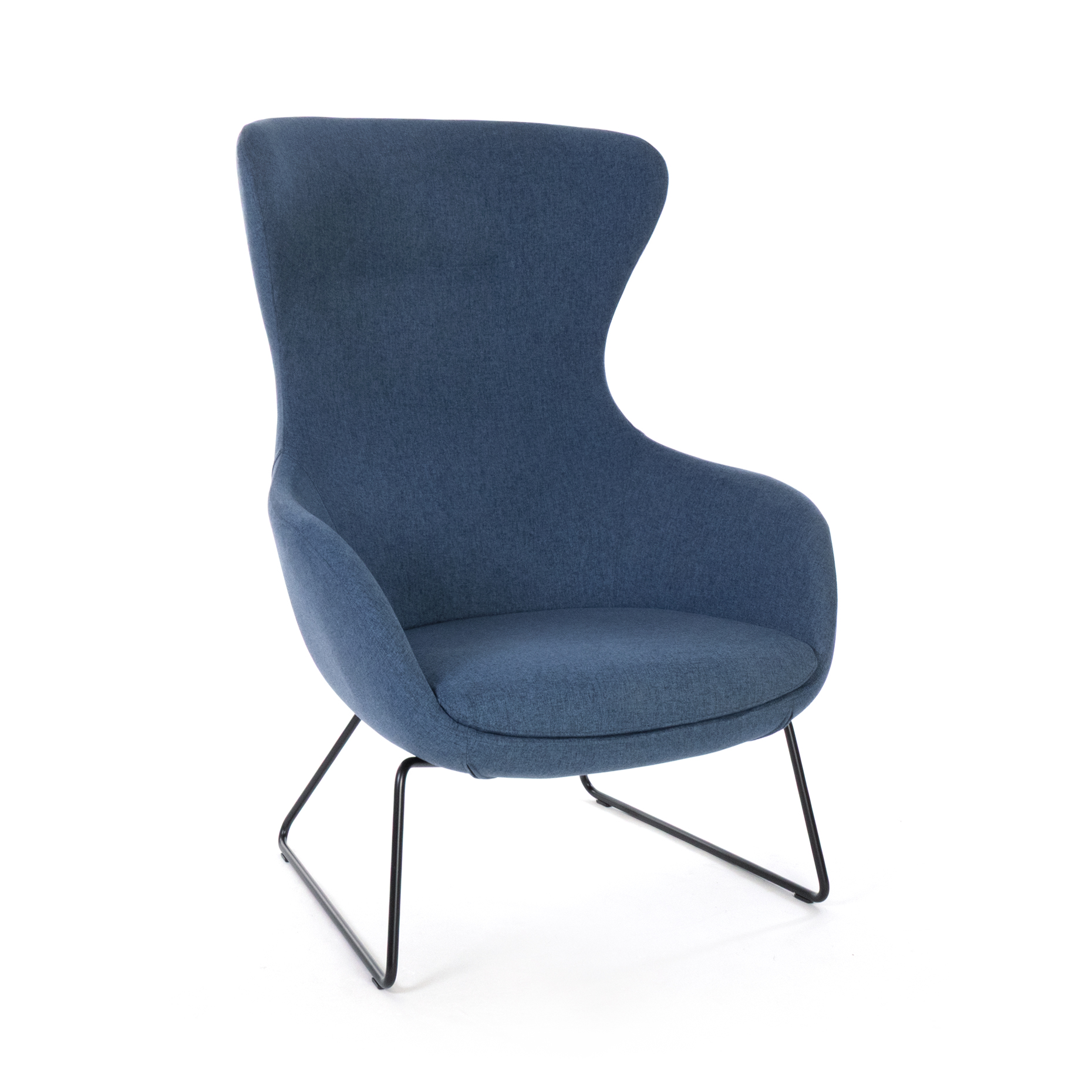 - PRODUCT DETAILS: Molded foam lounge chair, fully upholstered shell with sled base in black powder coated or polished chrome finish.