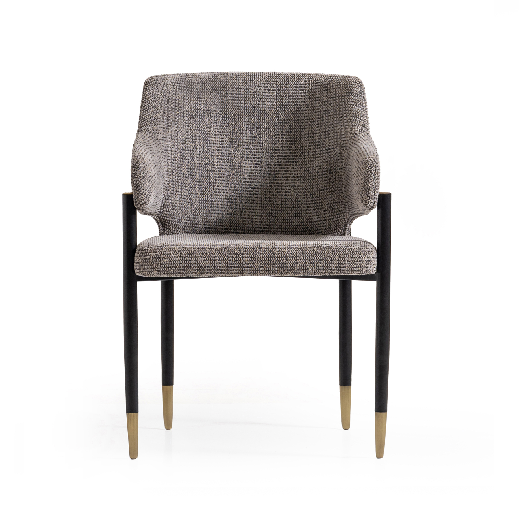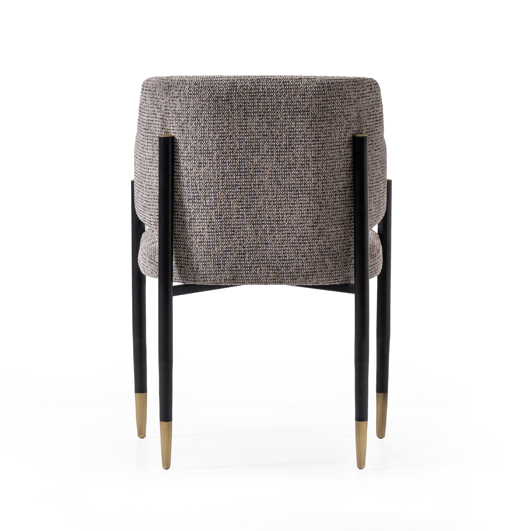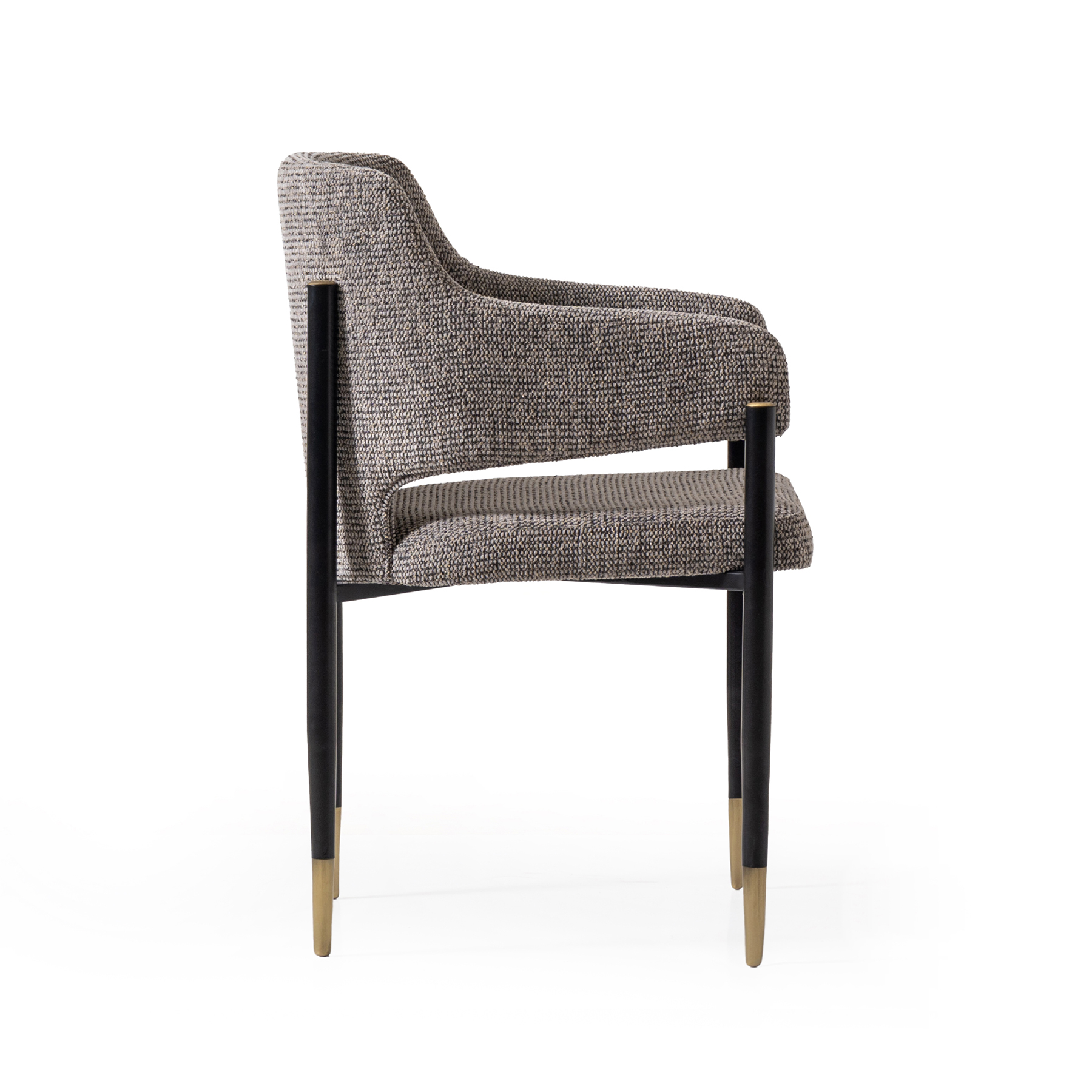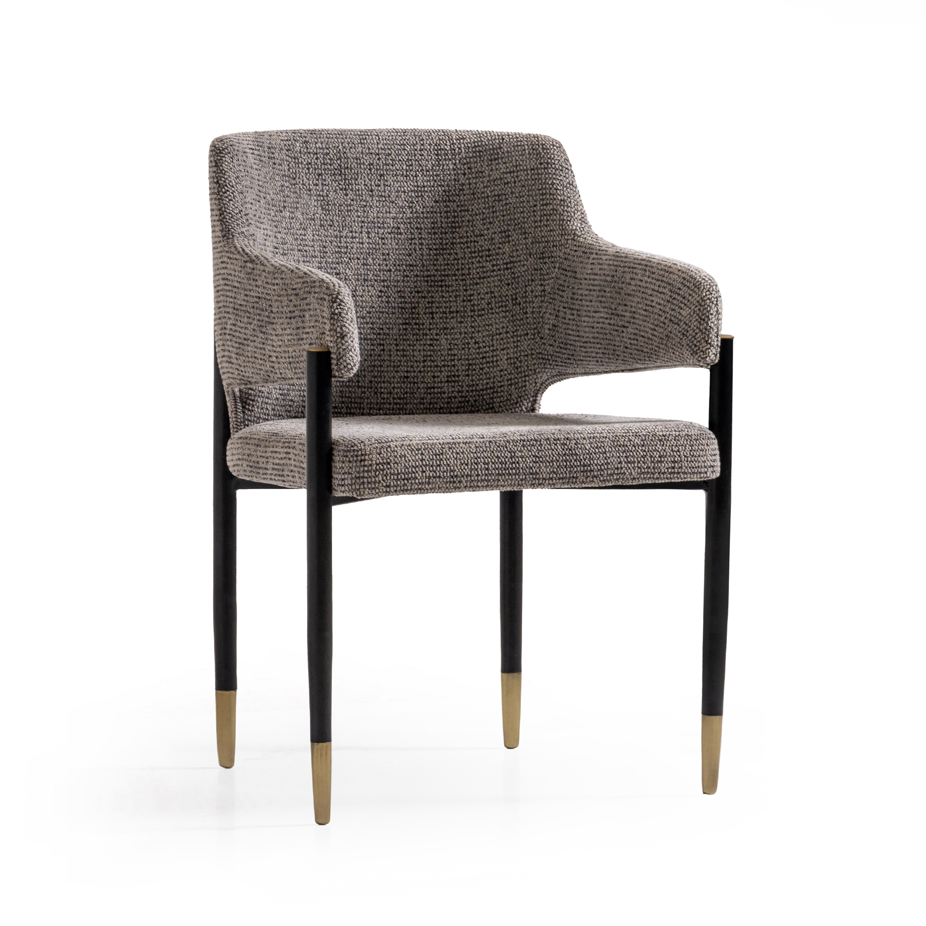 PRODUCT DETAILS: Upholstered shell with black powder coated or gold powder coated frame. Also available in black powder coated with accent gold with surcharge of $215 on list price.